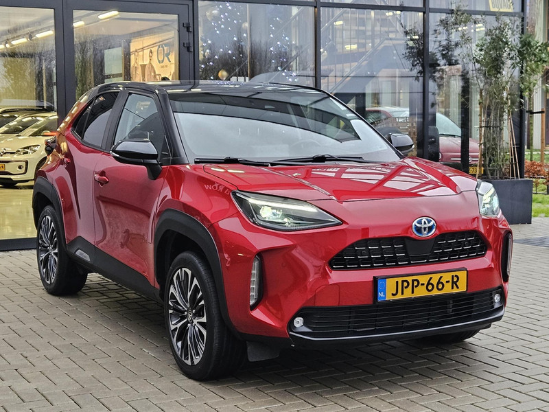 Zeer complete Two Tone (rood met zwart) Toyota Yaris Cross Hybride Automaat van de 1e eigenaar, met het luxe interieur en stoelen, het grotere multimedia scherm en o.a. Head-up Display (HUD) en panoramadak. Uiteraard is deze uitvoering ook voorzien van de optionele parkeersensoren en stoelverwarming. PRIJS IS VAST MAAR ALL-IN! Dus geen extra verplichte afleverkosten of dure afleverpakketten. Aflevering inclusief: nieuwe APK, volledig nakijken en onderhoudsbeurt, aircoservice, poetsbeurt, tenaamstelling en 6 maanden garantie. Optioneel: 1 jaar Bovag Garantie 450,- (mogelijk op auto's tot 8 jaar). . Uw dorpsgarage sinds 1981 voor Pijnacker-Nootdorp e.o. Klanttevredenheid: ANWB Garagereview 9,8 / Klantenvertellen 9,3 / Fixico 9,4 / Google 4,8 uit 5. Openingstijden verkoop: Ma t/m vr 9u tot 17:30 za tot 14u.